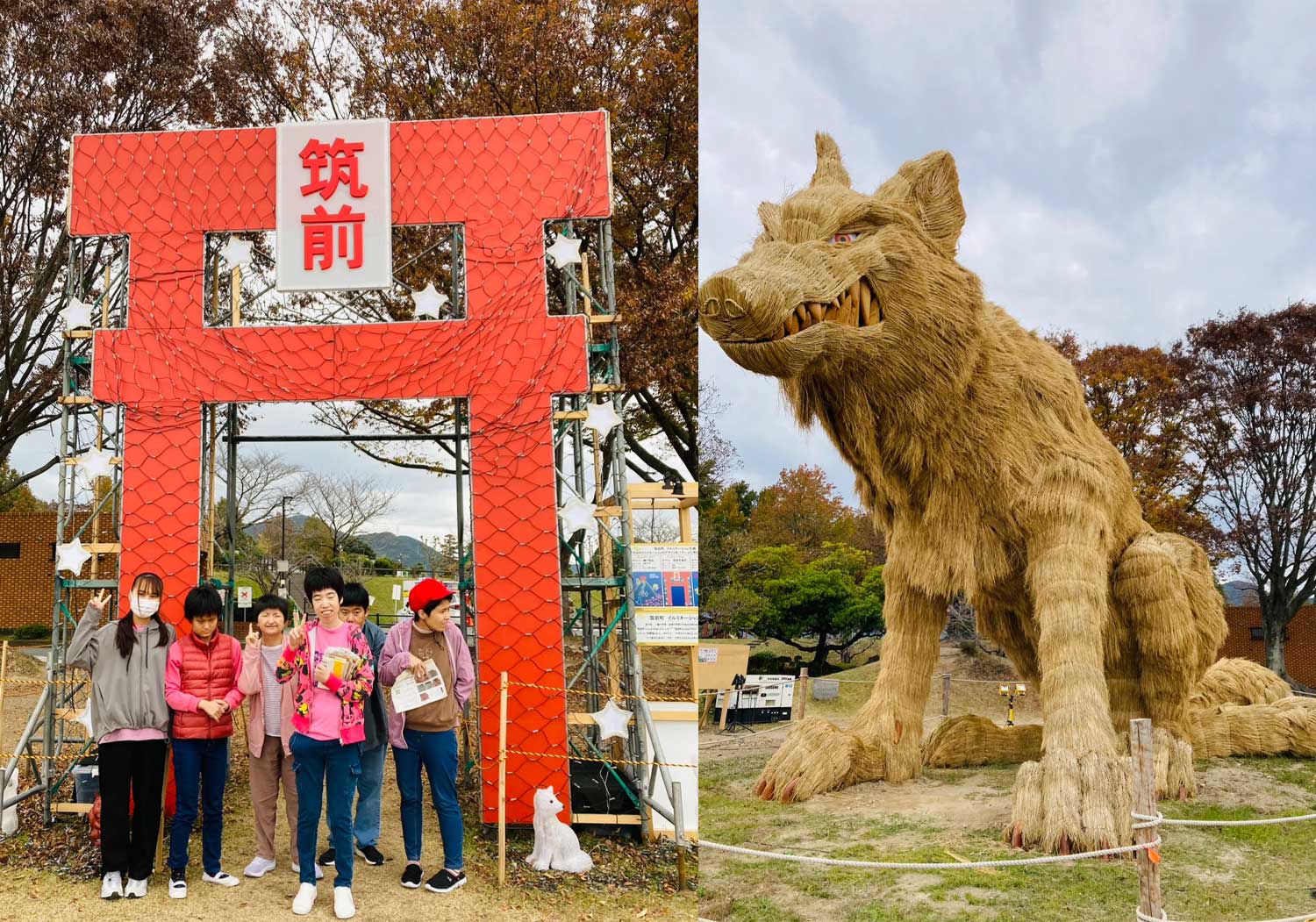 藁でできた山犬は迫力満点。